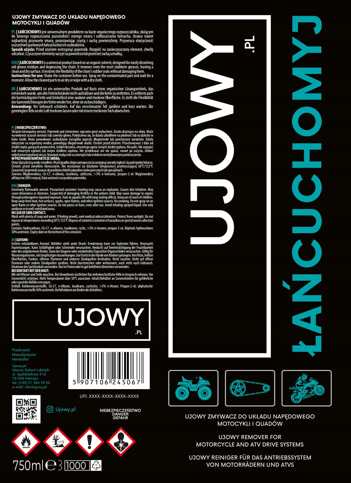 ŁAŃCUCHOMYJ-UJOWY ZMYWACZ DO UKŁADU NAPĘDOWEGO MOTOCYKLI I QUADÓW